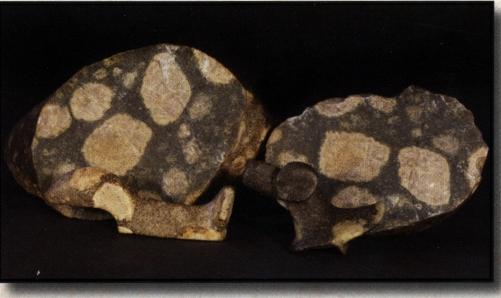 This ntgnty pannarea, targe porpnyry cobble was purposely broken into two portions. It was originally found in Michigan and has a maximum circumference of 19″.