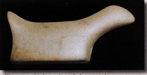 Limestone is a sedimentary rock that was formed from large deposits of ancient marine life such as coral. Limestone is often white in color but may take on many other shades of color during the patination process. Very few limestone birdstones have been found, but a few have been noted. None were available for illustrative purposes.